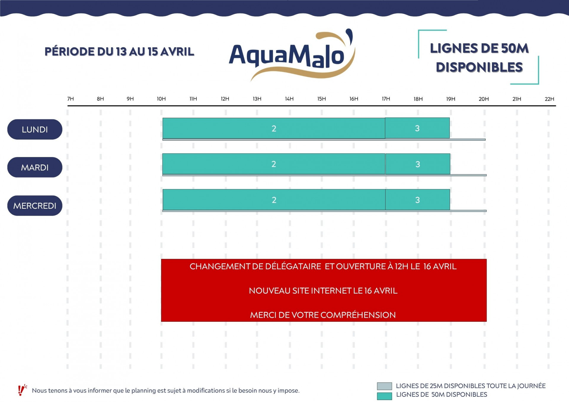 Ligne d'eau 50m- Du 13 au 15 avril